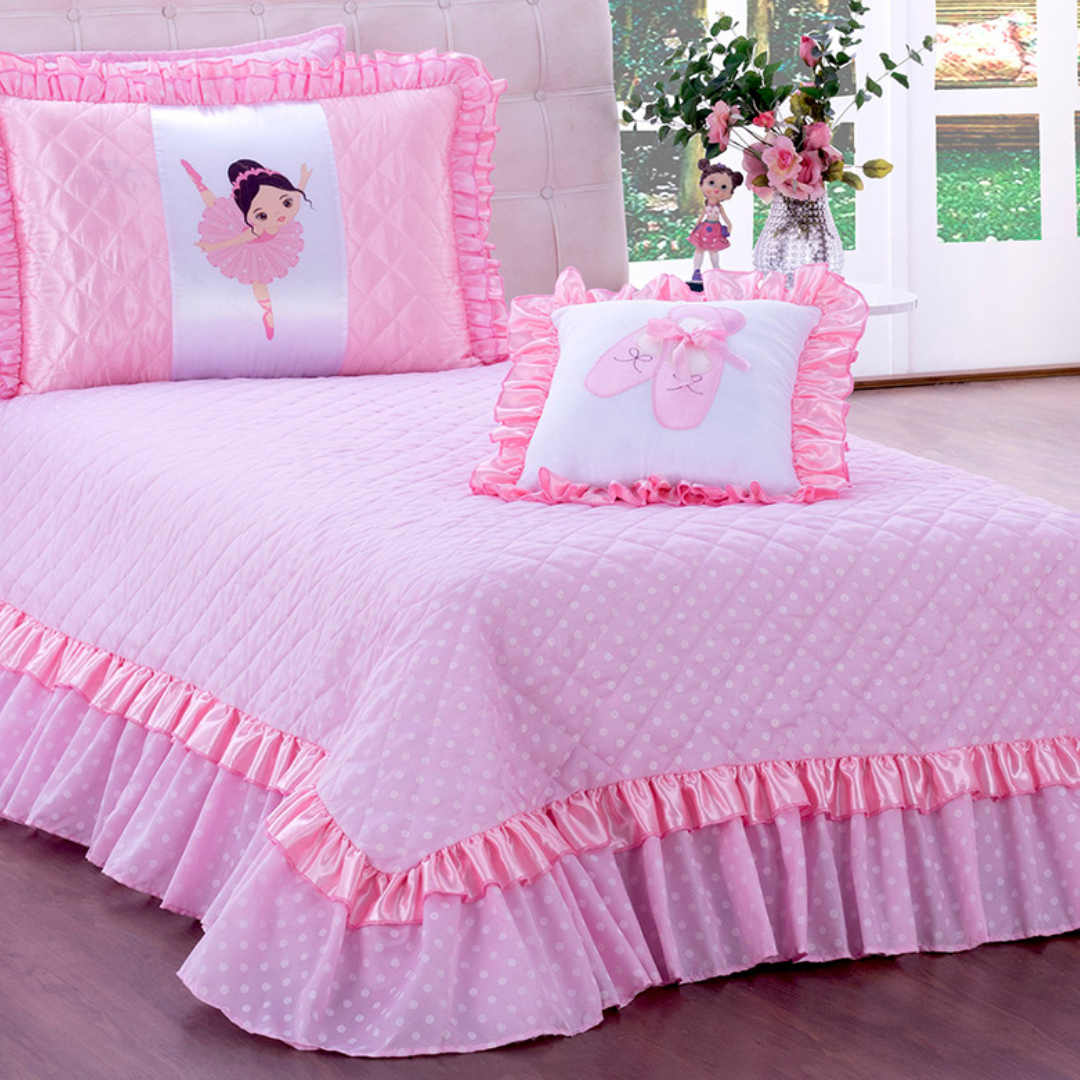 Colcha Cobre Leito Balé Bailarina Solteiro 03 Peças